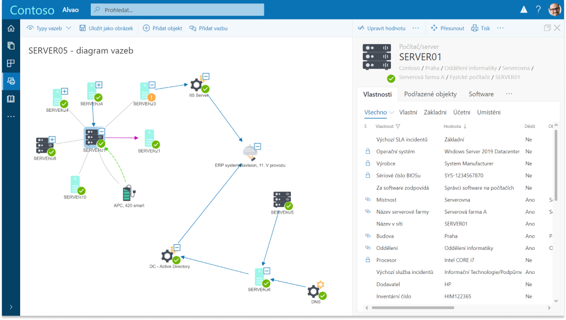 ALVAO mu poskytne všechny důležité informace, včetně provozní historie, konfigurace, vazeb i předchozích incidentů.